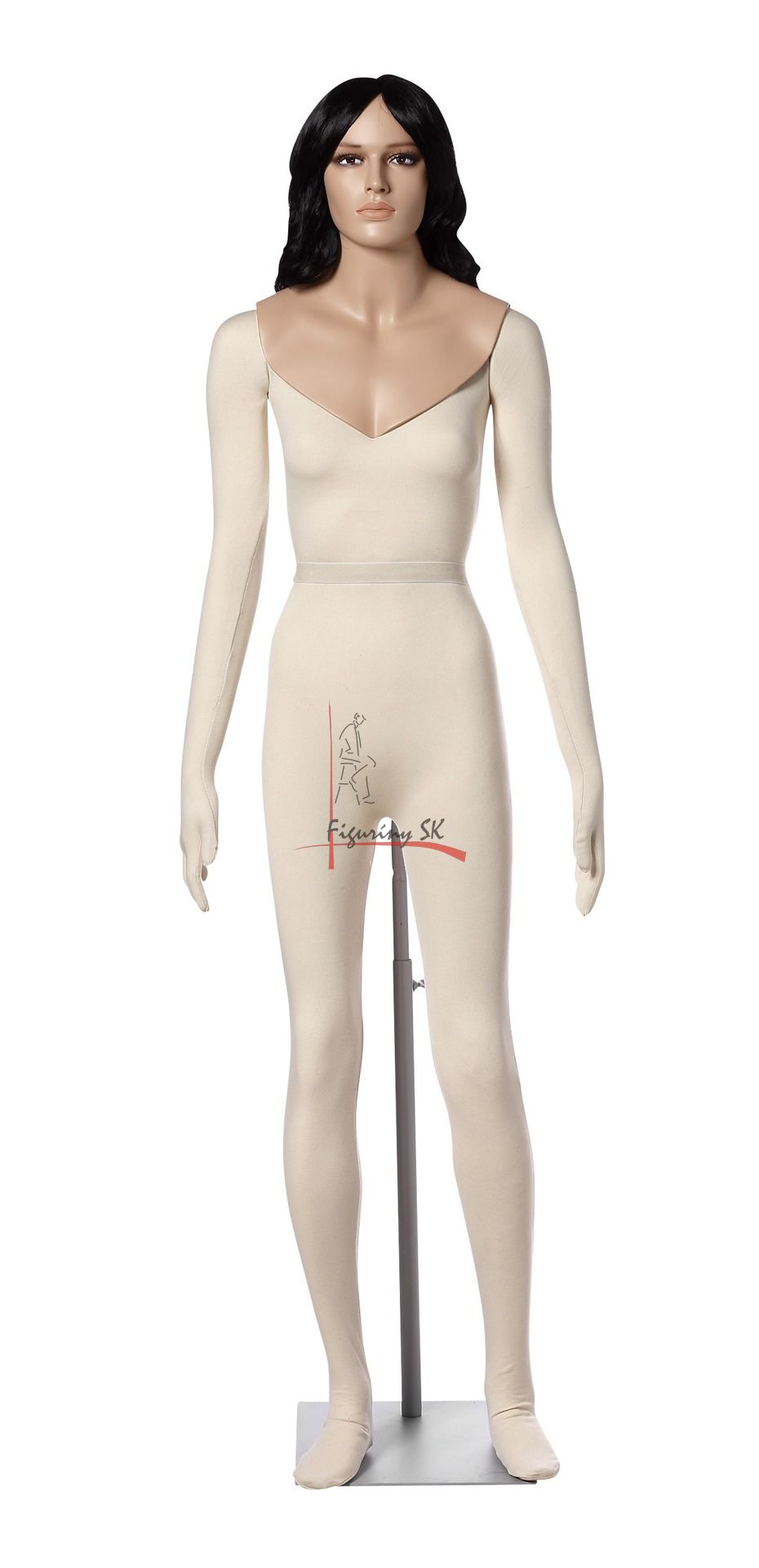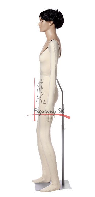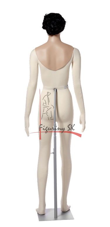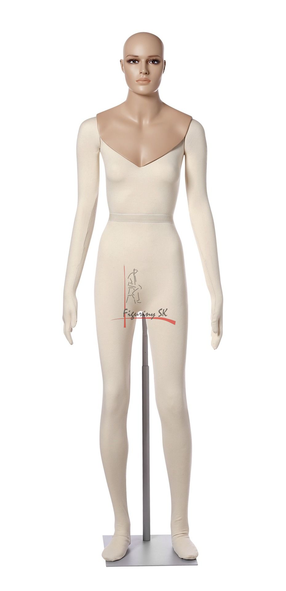 Dámska flexibilná figurína s hlavou, vyrobená z polyuretánovej peny potiahnutá elastickou látkou.